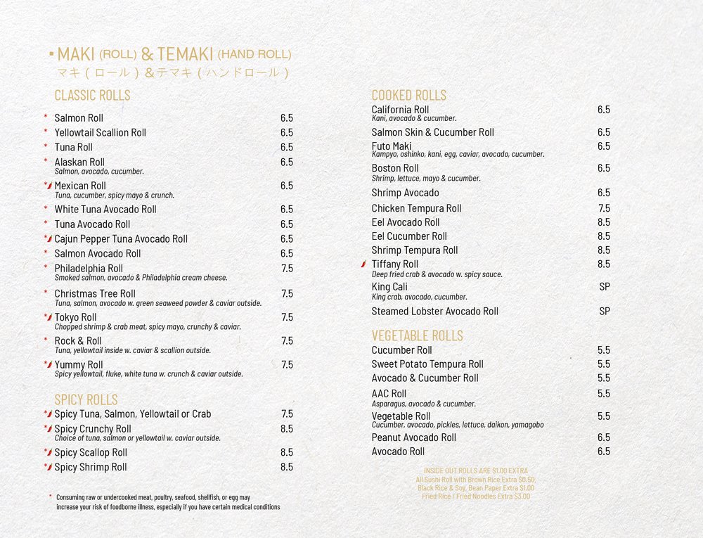 The One Sushi & Asian Bistro Menu